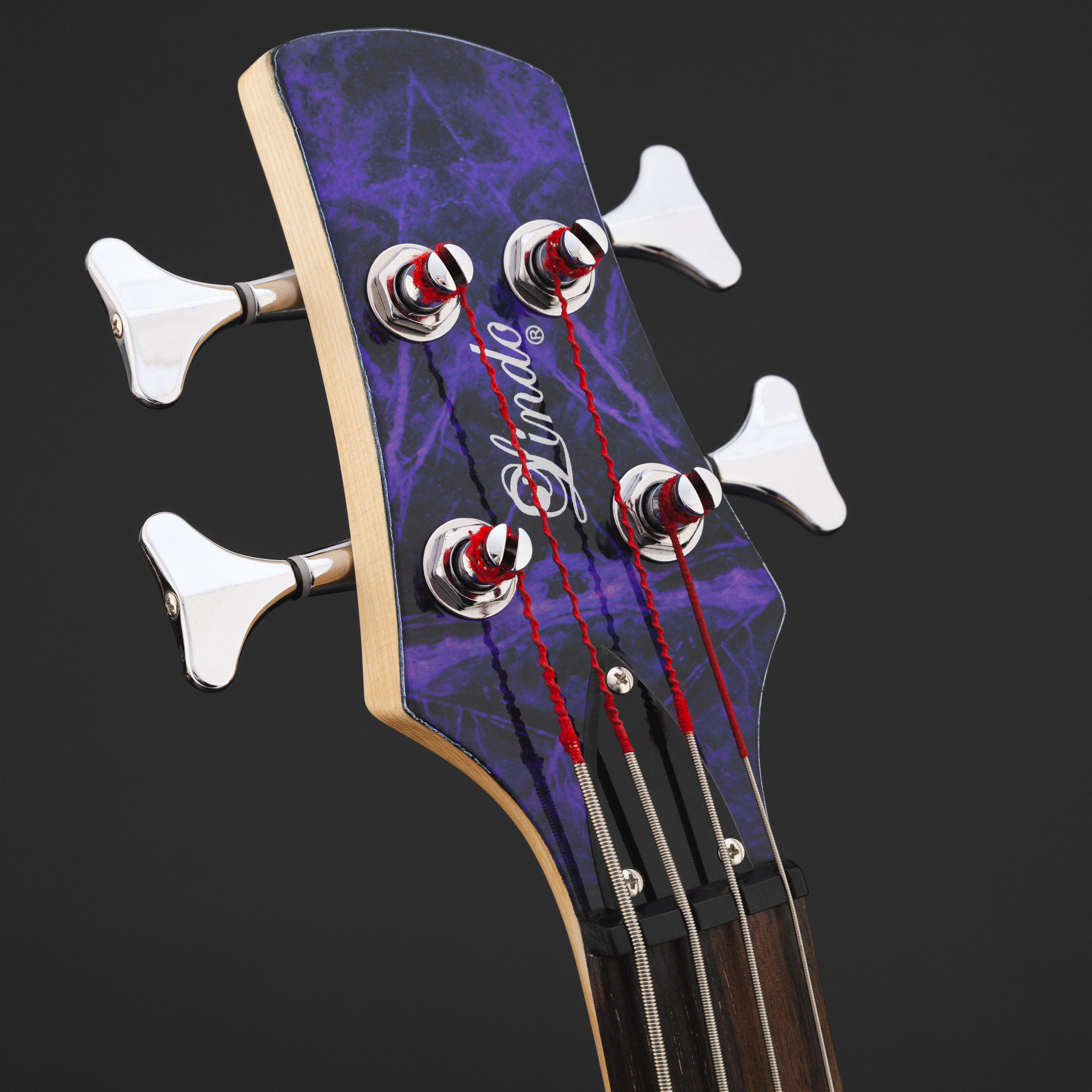 The Lindo PDB Short V2 features a body-matched headstock that gives the instrument a cohesive look and vibe. The headstock boasts chrome 19:1 tuning pegs perfectly matching the chrome bridge, providing a sleek and polished appearance. These tuners are not only easy to use but also solid and stable, giving the player maximum confidence that the bass is in tune and ready to play without any worry.